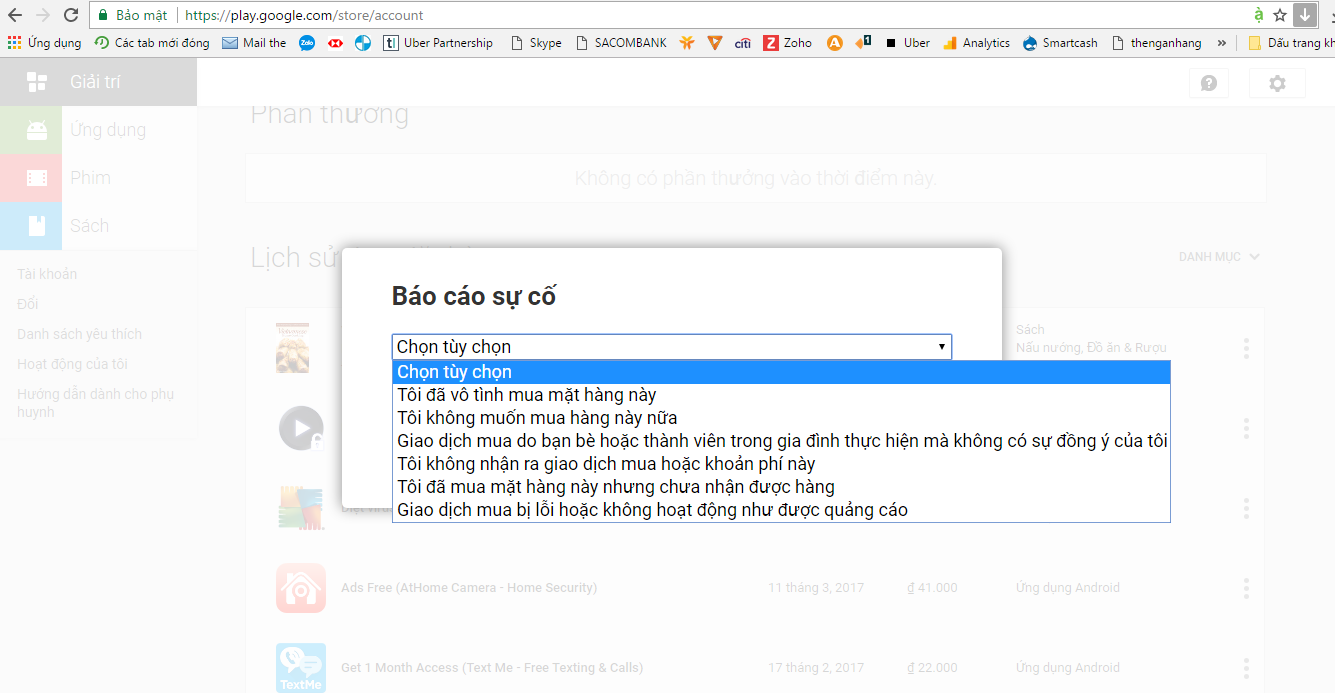 + Chọn Báo cáo sự cố > Tôi muốn yêu cầu hoàn lại tiền.