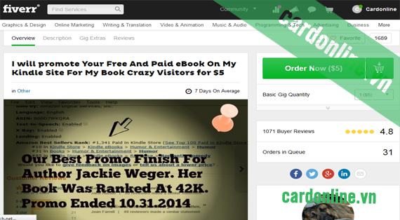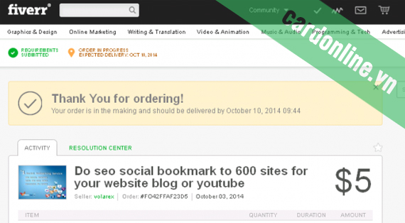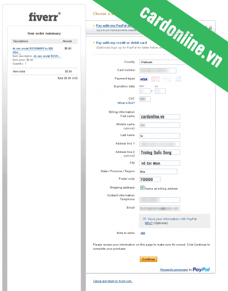 Sau đây cardonline.vn sẽ hướng dẫn các bạn cách thức đặt mua dịch vụ trên trang Fiverr, sử dụng thẻ Visa cardonline.vn. Tất cả các dòng thẻ Visa của www.cardonline.vn đều có thể giao dịch thành công.