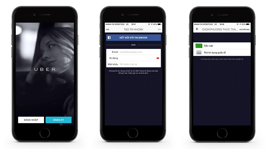 Giờ Uber đã được chính thức cho phép hoạt động tai Việt nam. Để thanh toán cho Uber có hai phương thức ( tiền mặt và thẻ quốc tế Visa/ Mastercard)