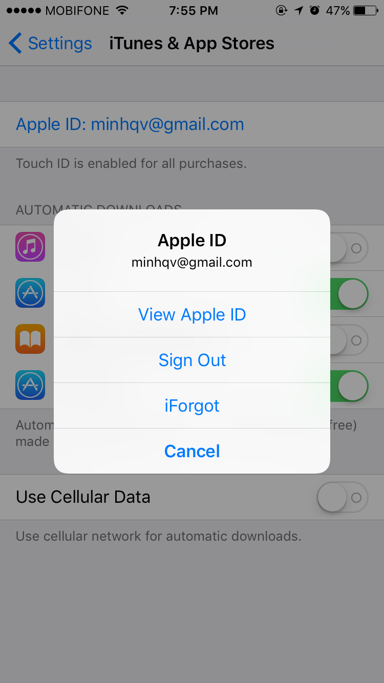 Chọn tài khoản Apple ID