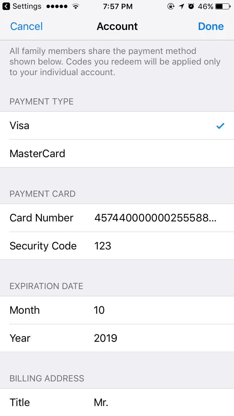 - Đối với loại thẻ tín dung credit thì luôn được, còn thẻ ghi nợ debit thì lúc được lúc không: một phần tùy vào ngân hàng, một phần tùy vào Policy của Apple lúc đó. Vì thế nếu bạn đã kiểm tra lại mọi thông tin điền vào đều đúng hết mà iTunes vẫn báo thẻ không được chấp nhận thì bạn có thể liên hệ với chúng tôi qua tổng đài 1900 7268 để được hỗ trợ về mua thẻ VISA/ MASTER.